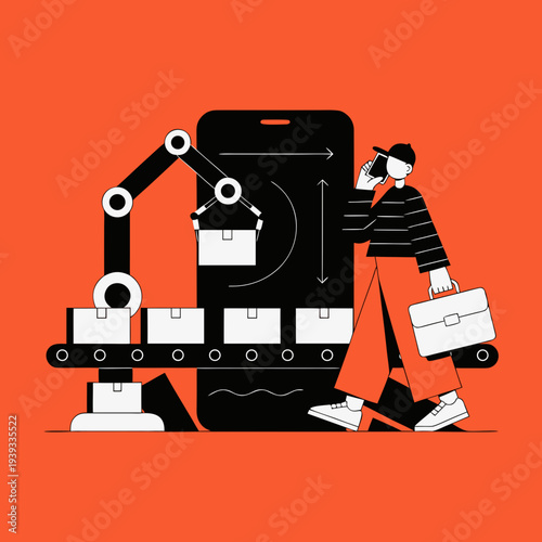 Builders with hammer, wheelbarrow working at construction site, building brick wall, vector illustration. Construction industry concept for web banner, website page etc.