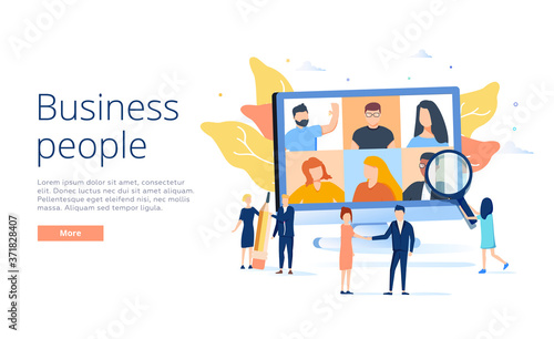 Contact us concept vector illustration. Huge desktop computer with envelope, email sign, message bubble. Male and female characters sending messages using laptop, mobile phone