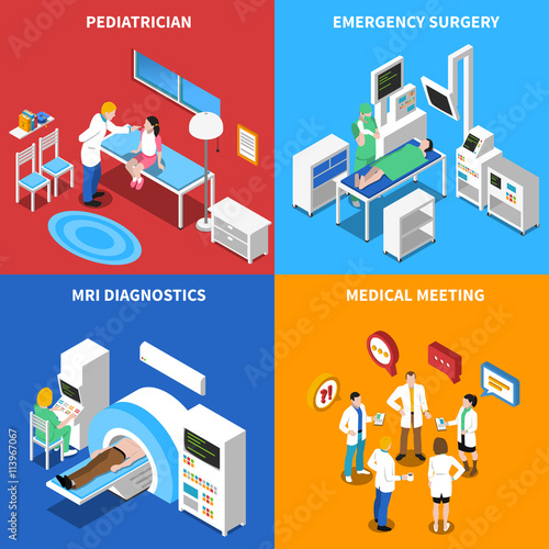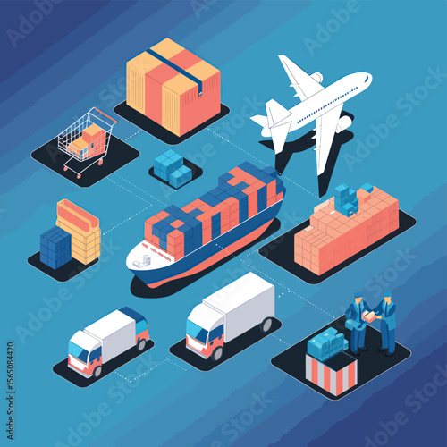 Conveyor vector flat isometric poster set. Conveyor system, Production and Packaging lines, Production control concept design elements for web banners, print, infographics.