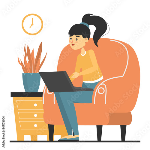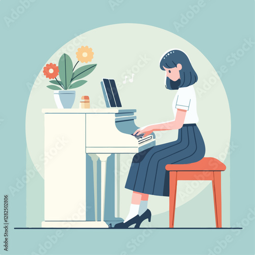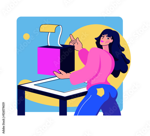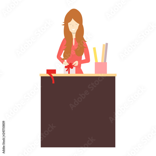 Restaurant reception concept vector illustration. Young woman receptionist standing at reception desk. Cook people flat style design element, icon isolated on white background.