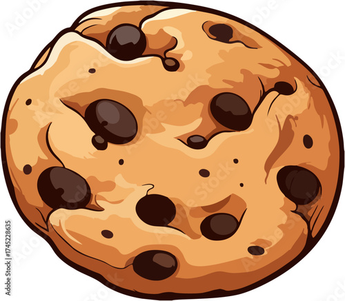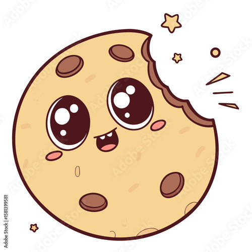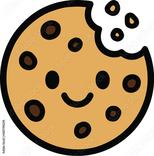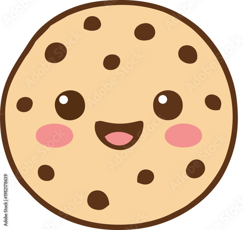 Cookie cartoon vector character. Cute face mascot illustration. Funny biscuit with chocolate chip. Happy anthropomorphic snack with comic smile expression isolated on white background