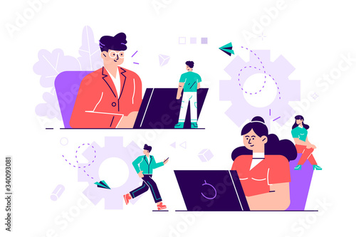 People in full hazmat suits carrying out preventive disinfection to decontaminate areas affected by novel coronavirus 2019-nCoV vector flat illustration. Coronavirus cleaning and disinfection services