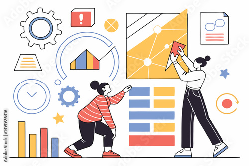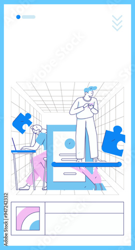 Coronavirus garbage, contaminated trash, vector flat illustration. People collecting disposable gloves, face masks from sidewalks and streets in plastic bags and throwing them into special trash bin.
