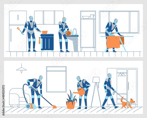Coronavirus pandemic. People in protective full hazmat suits disinfecting subway metro train, flat vector illustration. Decontamination of public transport. Coronavirus cleaning, disinfection services