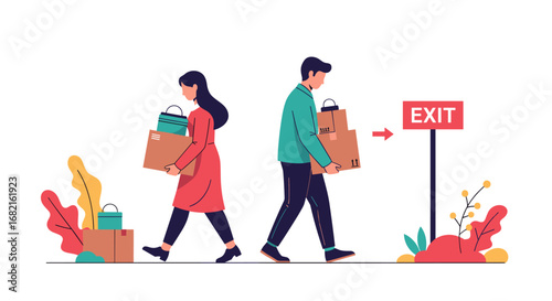 People walking along the street during corona virus pandemic, vector flat illustration. Concept of restrictions on people mobility, movement to stay healthy and prevent COVID-19 virus disease spread.