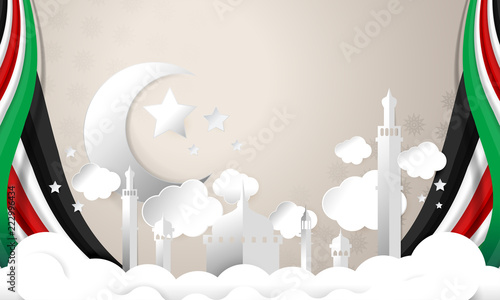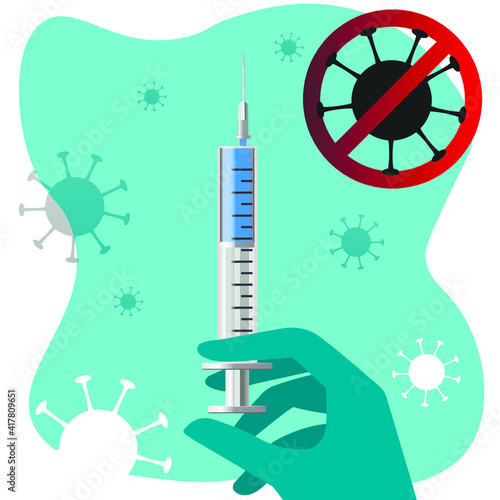 Covid-19 vaccine vials, injection syringe, flying plane, vector illustration in paper art style. Coronavirus vaccination, immunization. Travel after covid vaccine.