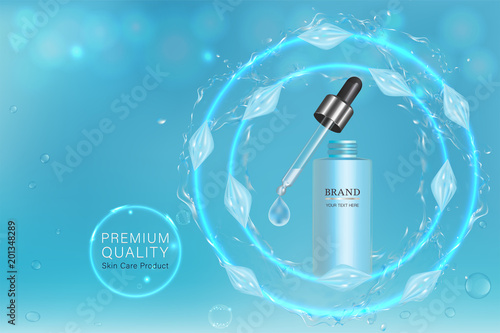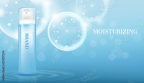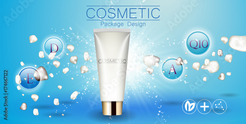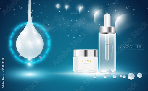 Cosmetic products ad. Vector 3d illustration. Skin care bottle template design. Face and body make up cream and lotion.