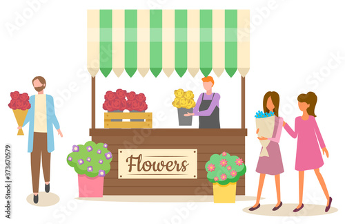 Cosmetics store scene set, flat vector illustration. Happy women shopping for perfumes, face and body skincare products. Beauty and fragrance retail business, cosmetic industry.