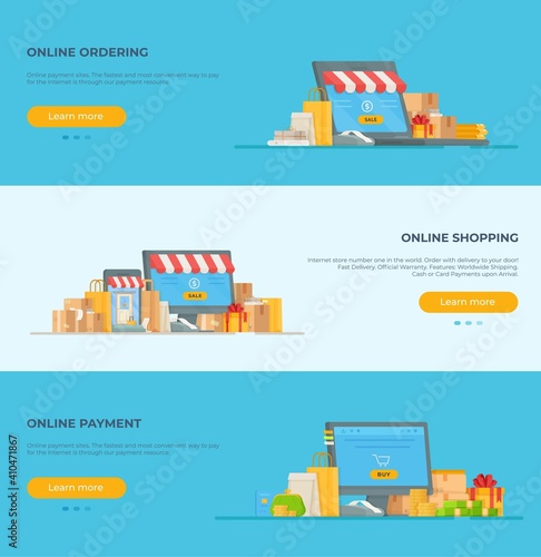 Cottage construction vector flat isometric horizontal banner set. Foundation setting, Framing and roofing, Ready to move in concept design elements, website templates.