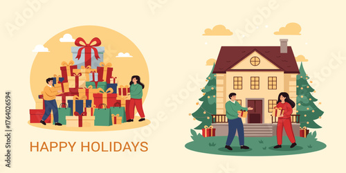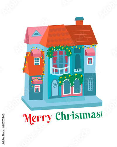 Vector illustration of firefighter in protective clothing and helmet extinguishing fire in country house. Burning country house flat style design element.