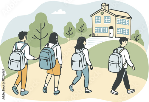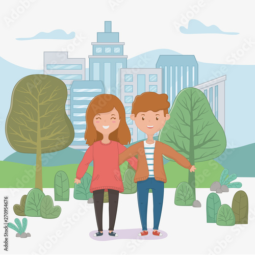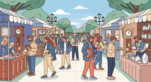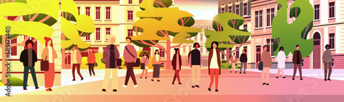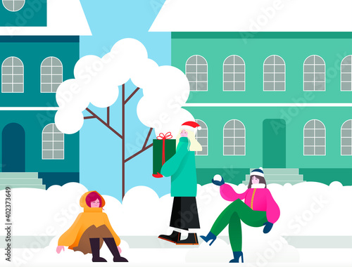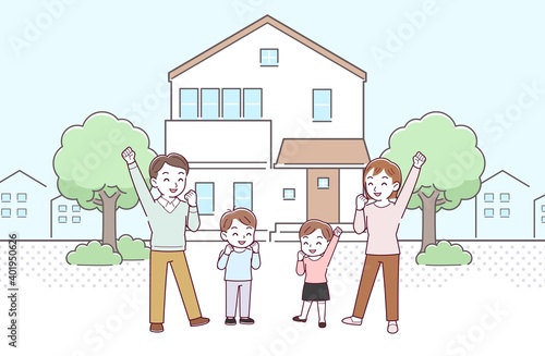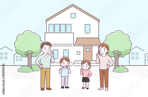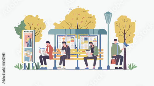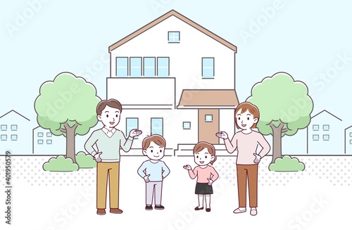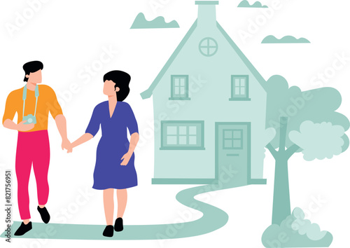 Couple choosing house to buy. Real estate concept vector illustration. Real estate agent offers property for sale. Broker helps people buying or renting house.