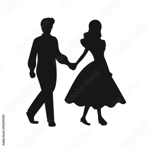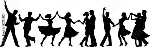Couple dancing silhouette isolated set on white background. Colorful pair of elegant people moving to music vector illustration. Man and woman dancers