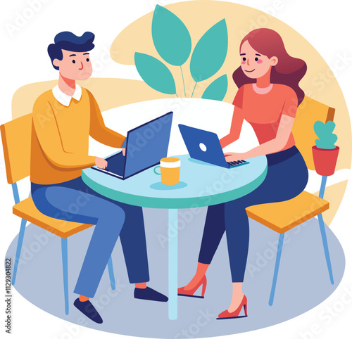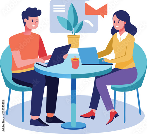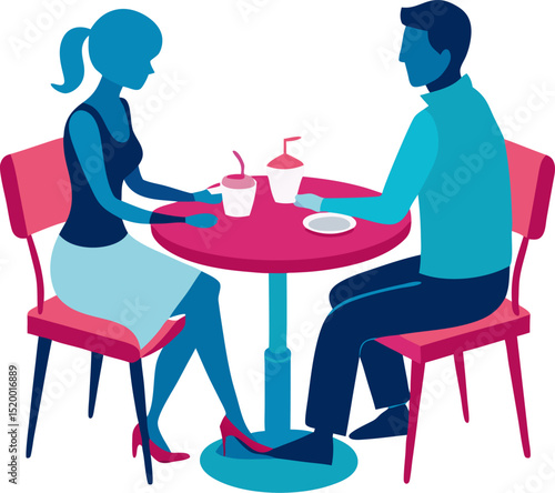 Couple drink coffee in cafe icon vector isolated on white background. Man and woman sitting at table talking enjoy tea time together. Dating or meeting cocnept