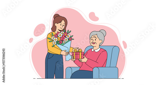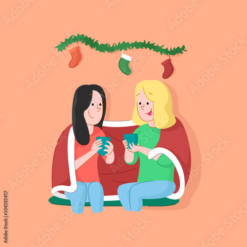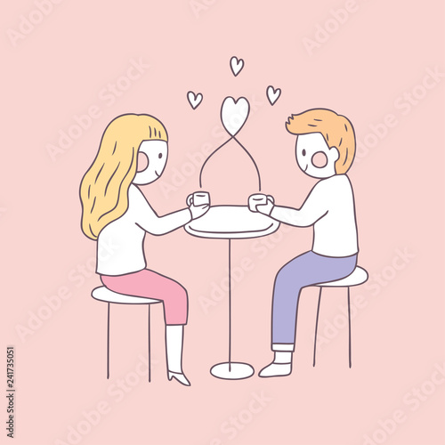 Couple having romantic dinner and drinking wine on sunset. Love and date concept illustration. Vector web site design template. Woman watering flowers in the garden outside house.