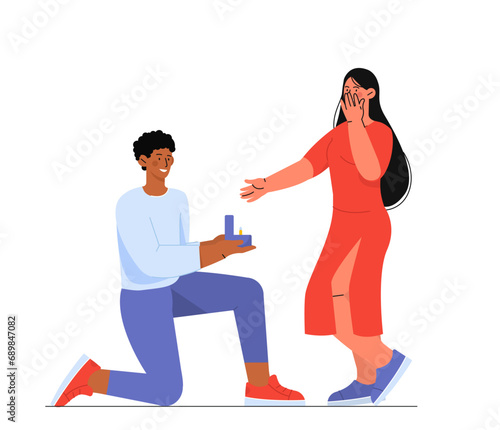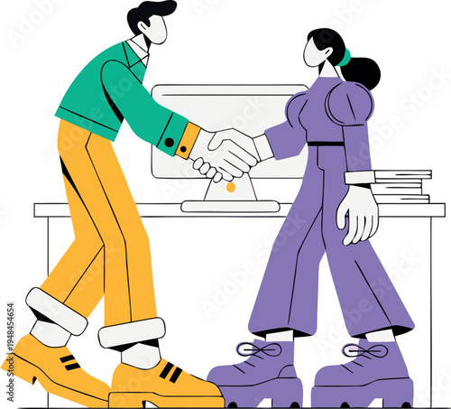 Couple in store choosing shoes vector illustration. Man and woman at retail shop mall buying footwear. Wide range of assortment on shelf. Young married family pair doing shopping together