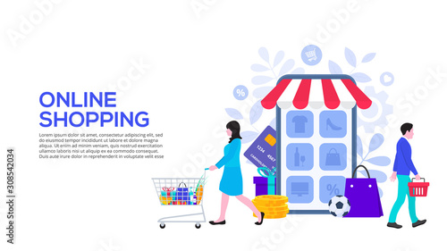 Couple looking around their new house. Real estate and property rent vector concept illustration. Home fo sale. Web site design template for real estate agency.