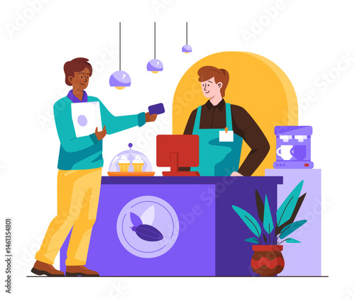 Man and woman playing air hockey table arcade game, flat vector isometric illustration. Game club, room, zone attractions, fun activities, entertainment. Arcade gaming.