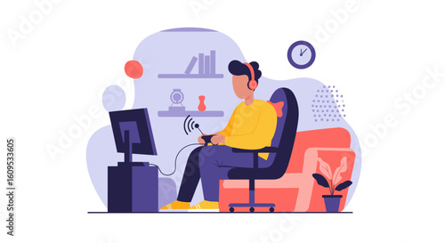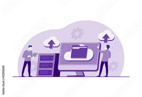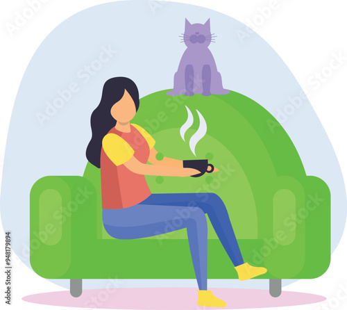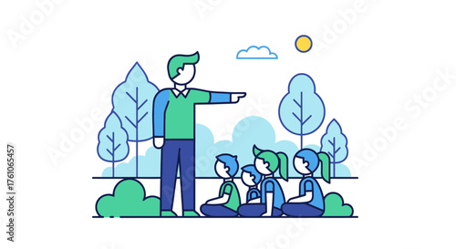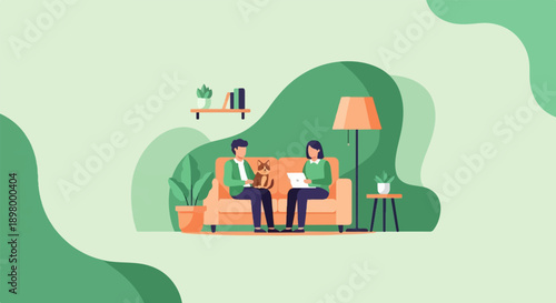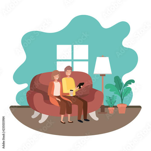 Couple sitting on bench with mountain on background. Love and romantic concept vector illustration. Cartoon characters.