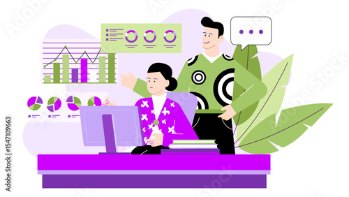 Vector illustration of young couple talking to each other while sitting on sofa in living room. Flat style design.