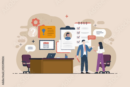 Delivery company couriers, male and female characters delivering fast food, groceries, gifts, flowers to customers, flat vector illustration. Online ordering and delivery service.