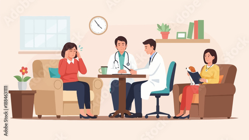 Court session in the courtroom, flat vector illustration. Legal trial scene with judge, jury, prosecuter, lawyer, security guard with defendant. Public hearing, criminal procedure. Judicial process.