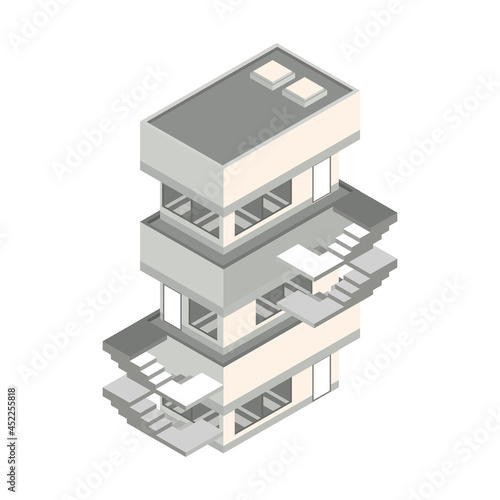 Court supreme government building isometric vector. Courthouse, bank administration, public institute, historic museum or university house exterior icon isolated on white background