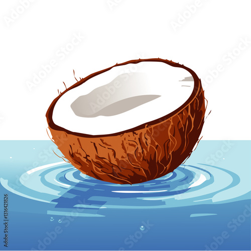 Cracked coconut in milk realistic vector icon. Design element isolated on white background