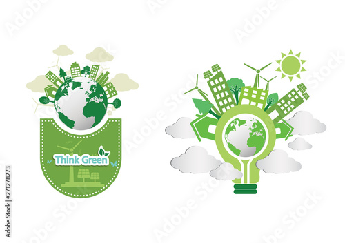 Creative idea, vector concept illustration in paper art craft modern style. Papercut green gear light bulb. Innovation, creative thinking, idea generation.