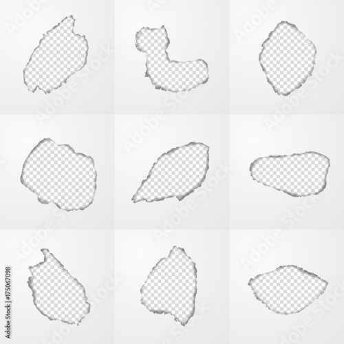 Creative paper cut craft style frame set, vector illustration. Realistic hole torn in paper sheet. Torn paper with ripped edges.