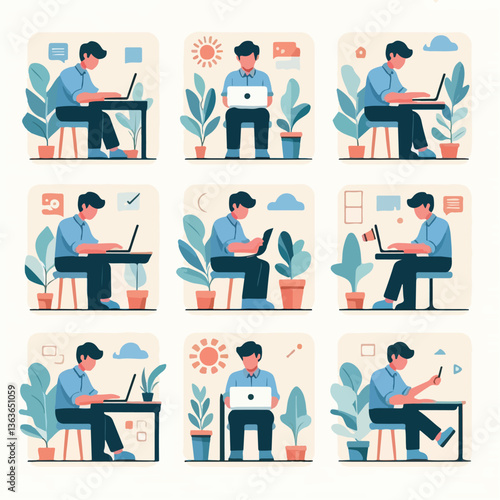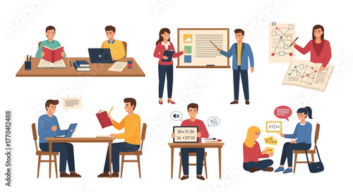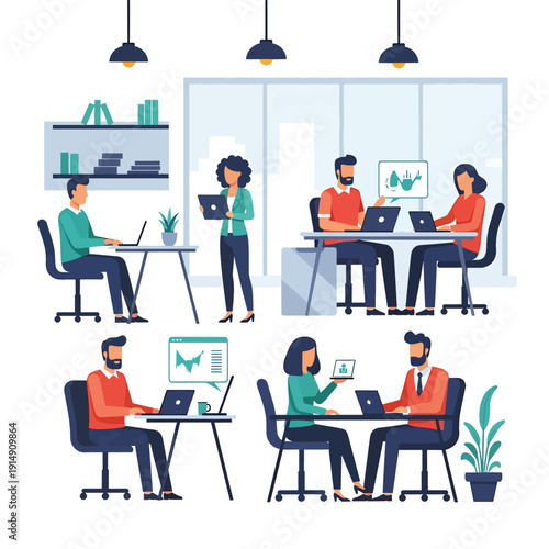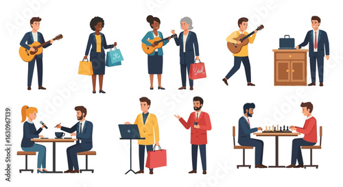 Creative team people vector icon set. Creative director and his team programmer, creator, website developer, graphic designer, system administrator, idea man. Flat style design.
