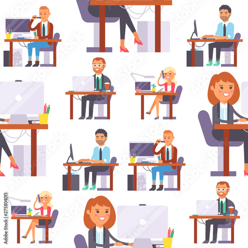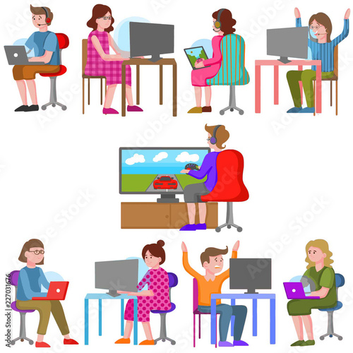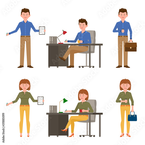 Vector illustration of creative director and his team programmer, creator, website developer, graphic designer. Creative team people symbols, icons isolated on white background. Flat style design.