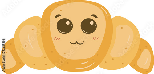 Croissant cartoon vector funny character cute roll illustration. Happy bakery food face icon isolated on white background