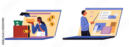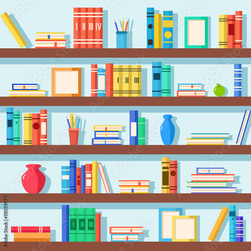 Crossbooking concept vector flat style design illustration. Diversity people reading books while sitting and lying on bookshelves. Library for exchange of books and spend good time.