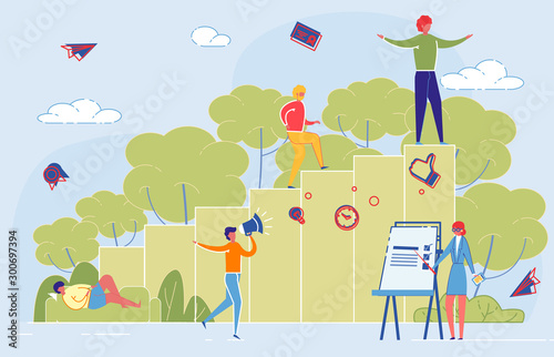 Crowd of people walking in spring city park vector illustration. Romantic couple having picnic, happy family roller skating, teenager skateboarding, grandpa rest on bench, female listening music