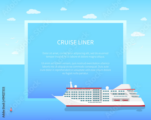 Cruise liner vector horizontal banner. Travel poster with large passenger cruise liner and place for text. Flat linear style design.