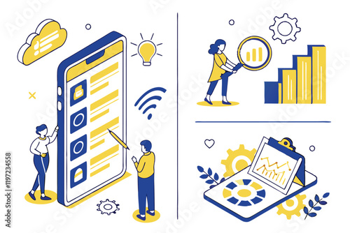 Cryptocurrency stock exchange, flat vector isometric illustration. People exchanging bitcoin, ethereum digital currency to dollar. Cryptocurrency marketplace.