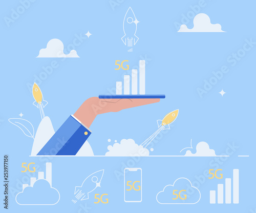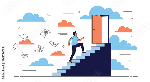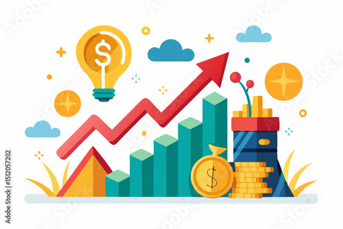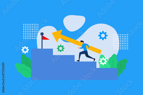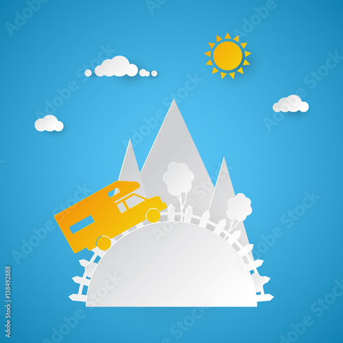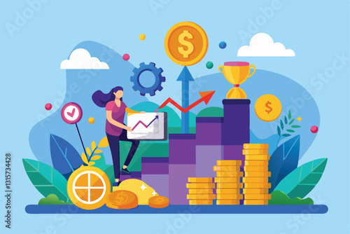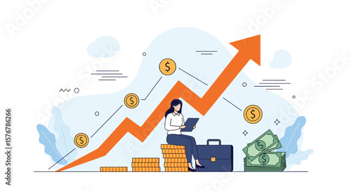 Currency trader looking through telescope while standing on up arrow. Vector paper cut illustration. Stock exchange market, investment and trading concept for web banner, website page etc.