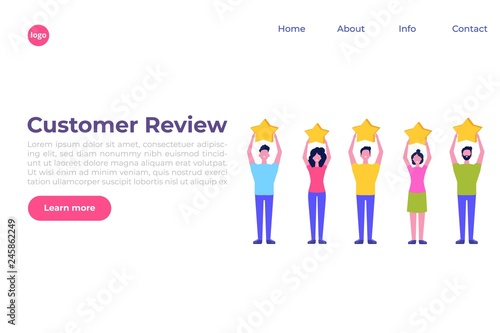 Customer feedback landing page website template. Vector isometric illustration. Customer review concept.