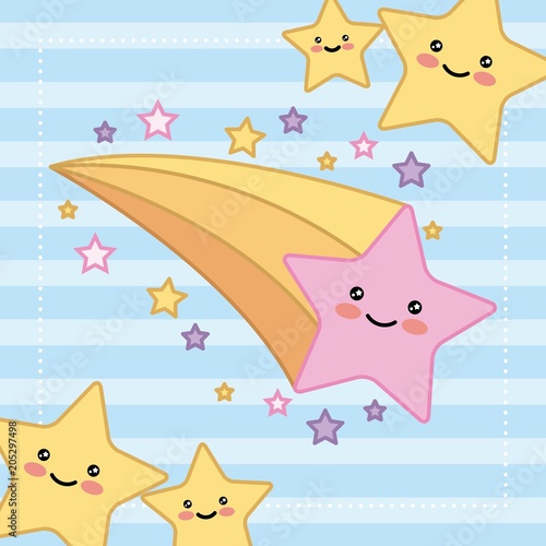 Male and female characters giving five gold rating stars, vector flat style design illustration. Customer rating, reviews and testimonials, feedback, social media marketing concept.