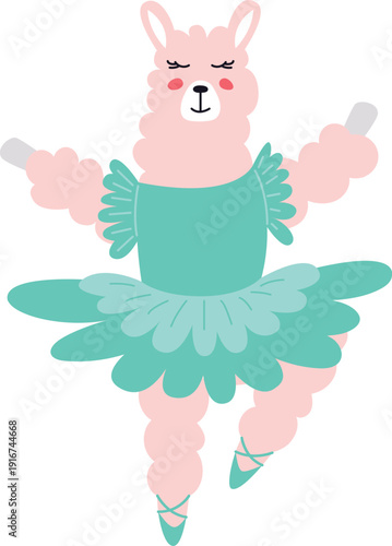 Cute alpaca vector. Funny lama walking cartoon icon. Kawaii animal smiling having fun illustration. Happy satisfied pleased mascot with fluffy curly pink wool isolated on white background