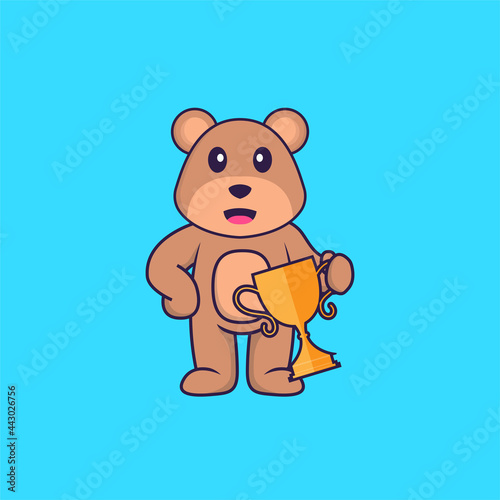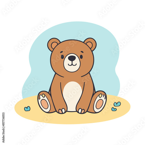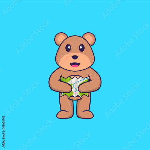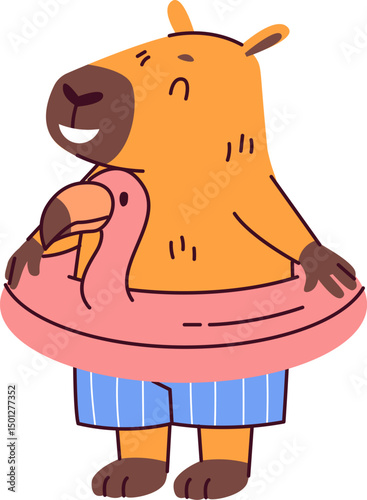 Cute bear vector. Funny forest animal with inflatable swimming ring icon illustration. Happy grizzly summer character isolated on white background