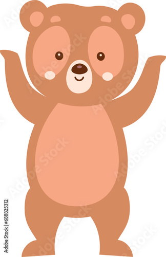 Cute bear holding spring bird vector icon. Cartoon funny brown teddy character isolated illustration on white background