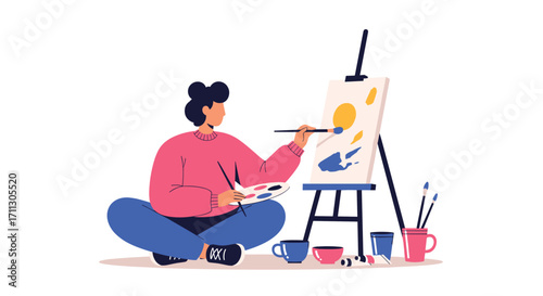 Cute boy sweeping floor with broom, helping parents with cleaning house, flat vector illustration. Kids household chores and responsibility.