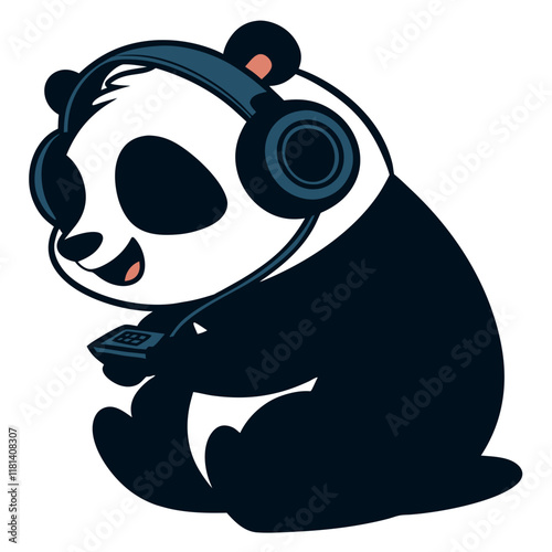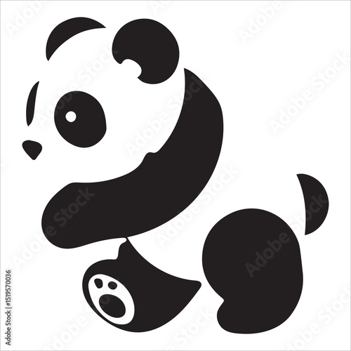 Cute cartoon panda vector. Bear animal icon. Funny baby cub character with happy face eating bamboo isolated on white background