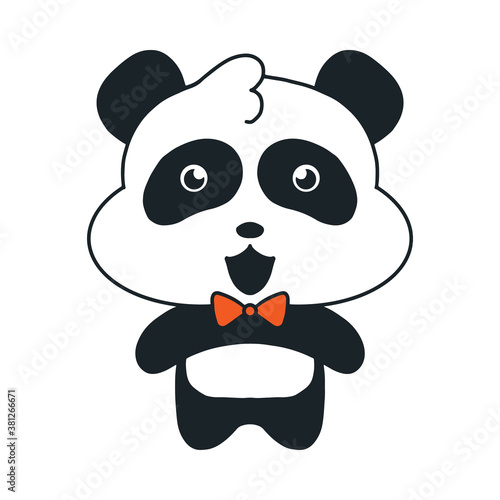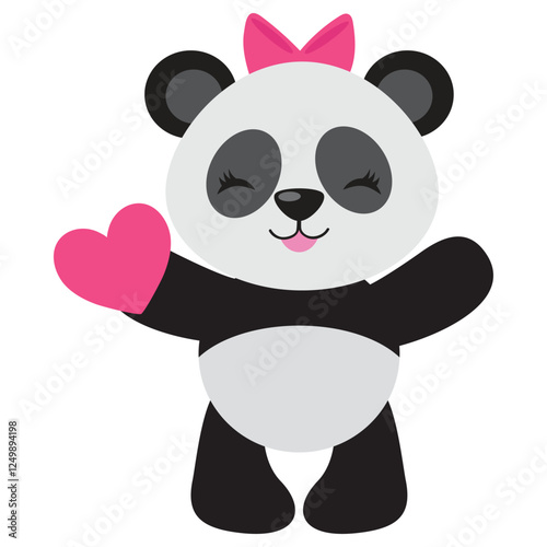 Cute cartoon panda vector. Bear animal icon. Funny baby cub character with happy face fall in love, holding heart symbol isolated on white background