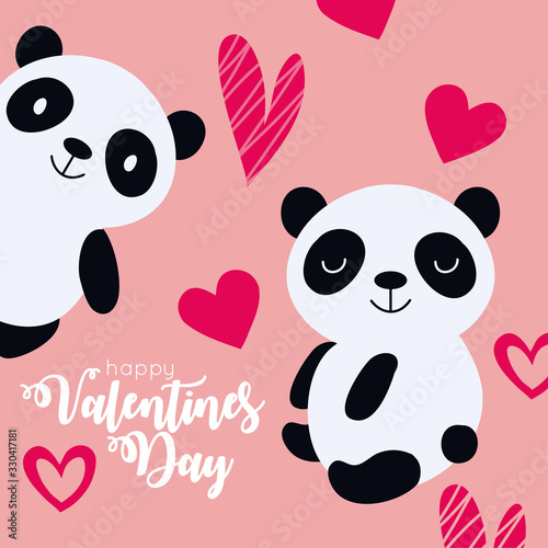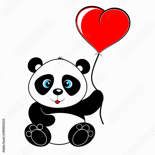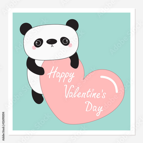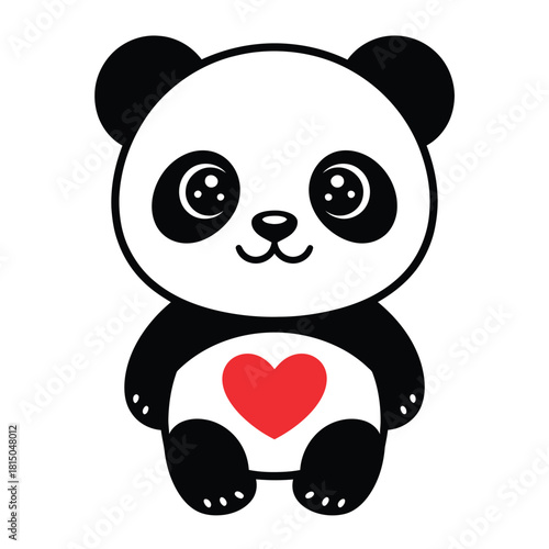 Cute cartoon panda vector. Bear animal icon. Funny baby cub character with happy face holding love you recognition placard isolated on white background