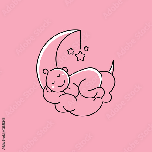Cute cat vector. Cartoon animal. Kitten character illustration. Funny pet curled up sleeping having sweet dream icon isolated on white background