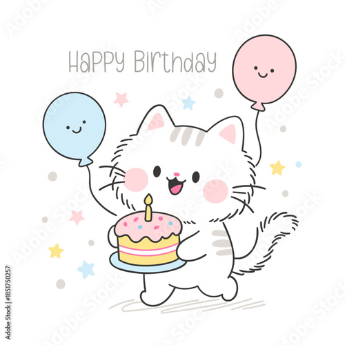 Cute cat vector. Cartoon animal. Kitten character illustration. Funny pet eating dry food from bowl having lunch icon isolated on white background