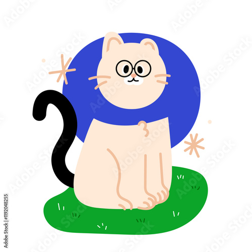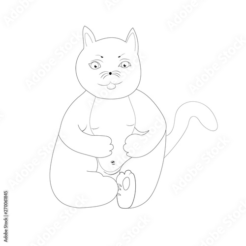 Cute cat vector. Cartoon animal. Lazy kitten character illustration. Funny pet licking washing paw icon isolated on white background