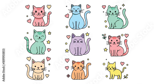 Cute cat zodiac signs, vector illustration isolated on white background. Twelve funny cats astrological signs Aries Taurus Gemini Cancer Leo Virgo Libra Scorpio Sagittarius Capricorn Aquarius Pisces.